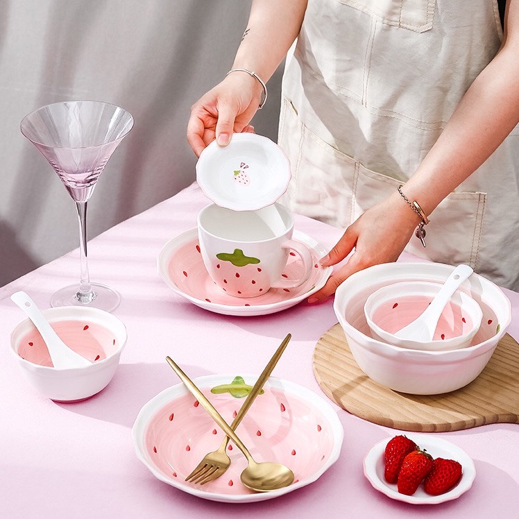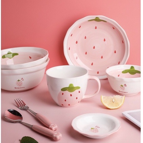 Nhà cửa & Đời sống > Bộ đồ bàn ăn > Tô || Bộ Chén Dĩa Sứ Bát Ăn Cơm Đĩa Sứ Dâu Tây Dễ Thương Cute Decor Cao Cấp S101Còn hàng