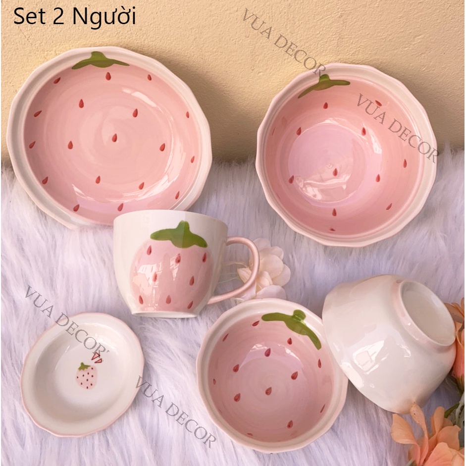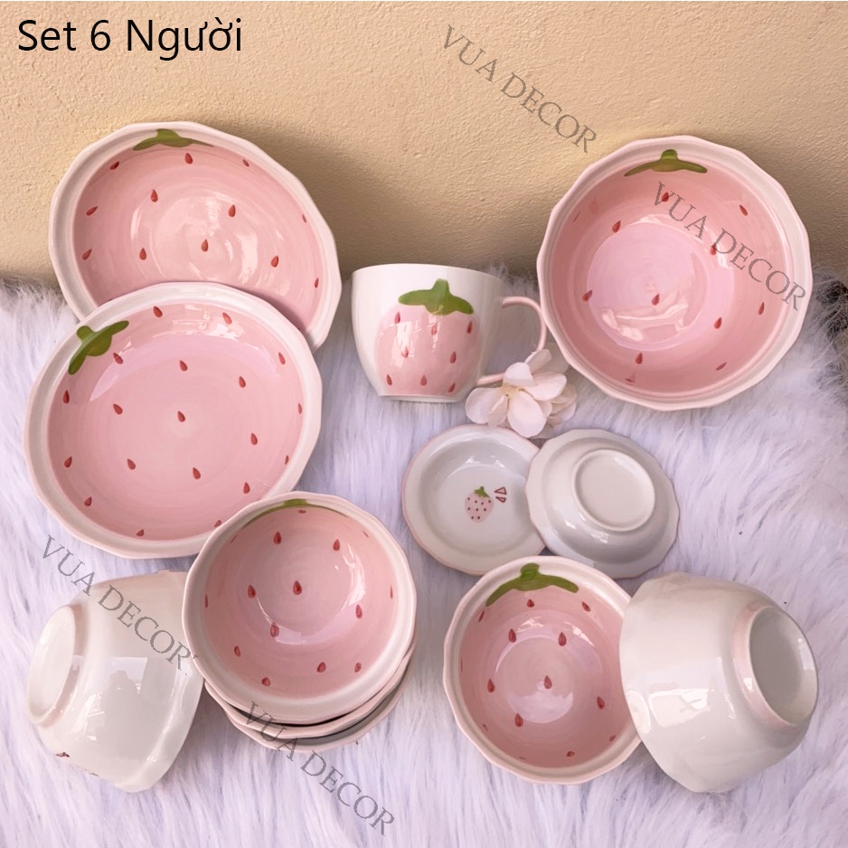 Bộ Chén Dĩa Sứ Bát Ăn Cơm Đĩa Sứ Dâu Tây Dễ Thương Cute Decor Cao Cấp S101