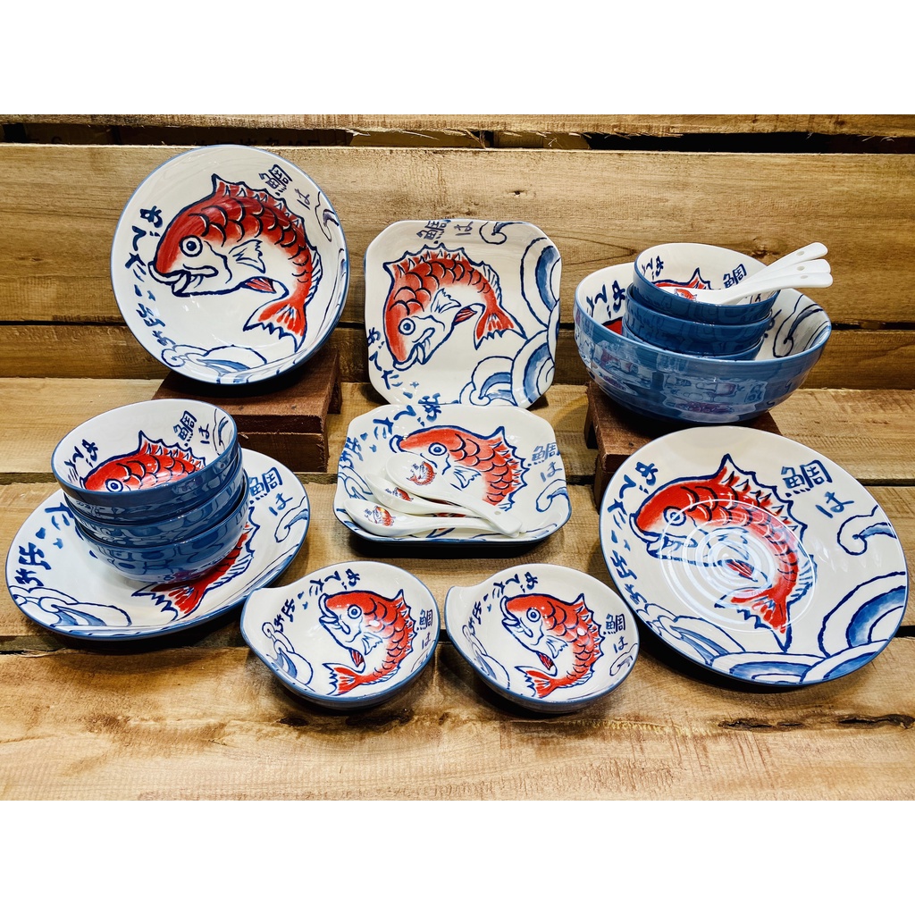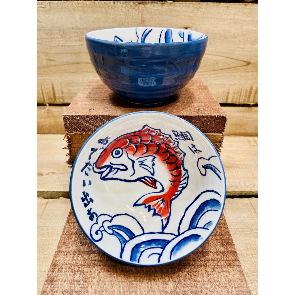 Bộ Chén Dĩa Sứ Bát Ăn Cơm Đĩa Sứ Dễ Thương Cute Bát Đĩa Cá Chép Đỏ Decor Cao Cấp S133