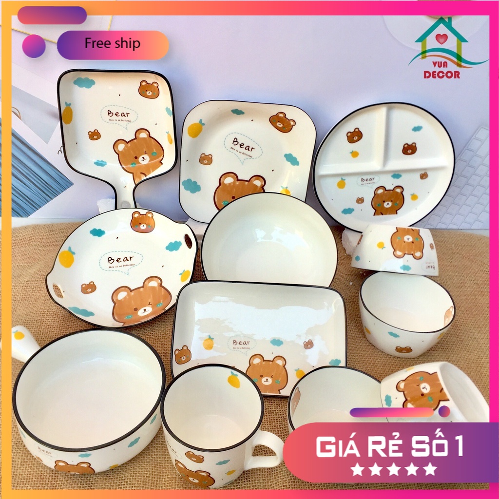 Nhà cửa & Đời sống > Bộ đồ bàn ăn > Tô || Bộ Chén Đĩa Sứ Decor Gấu Nâu Chén Dĩa Dễ Thương Cute Cao Cấp S113Còn hàng