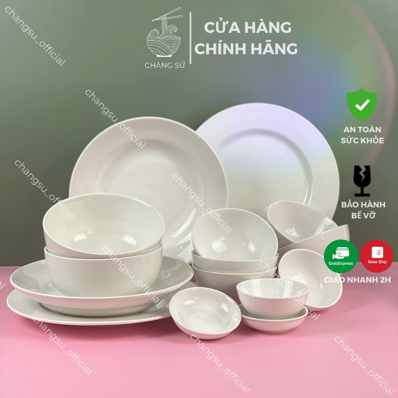 Bộ chén dĩa sứ trắng 16 món đầy đủ - Set bát đĩa ăn cơm gia đình sứ Hảo Cảnh