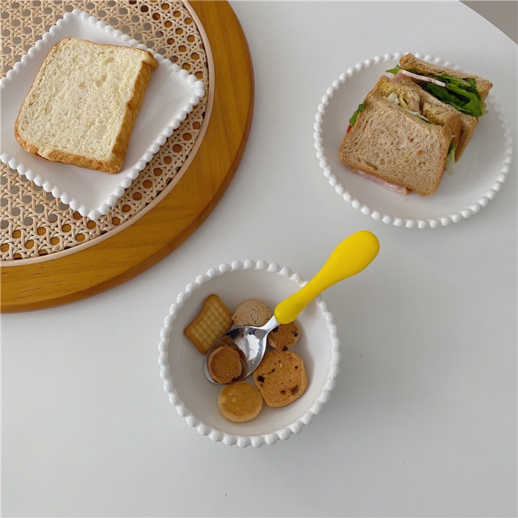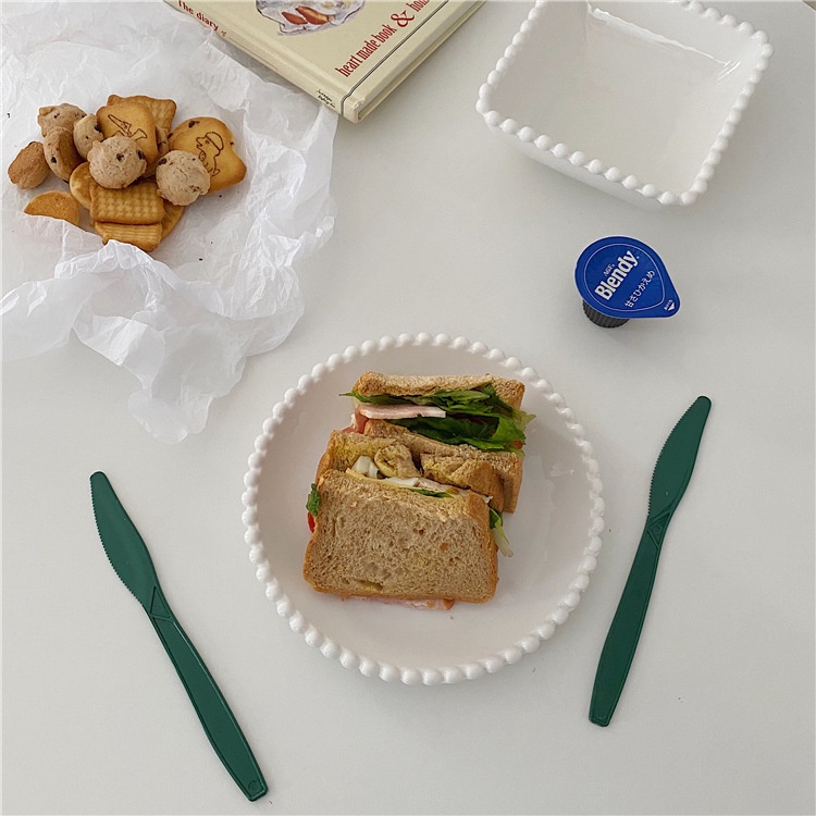 Nhà cửa & Đời sống > Bộ đồ bàn ăn > Dĩa || Chén, Dĩa Sứ Trắng Trơn Có Viền Chấm Tròn Dotted RimCòn hàng
