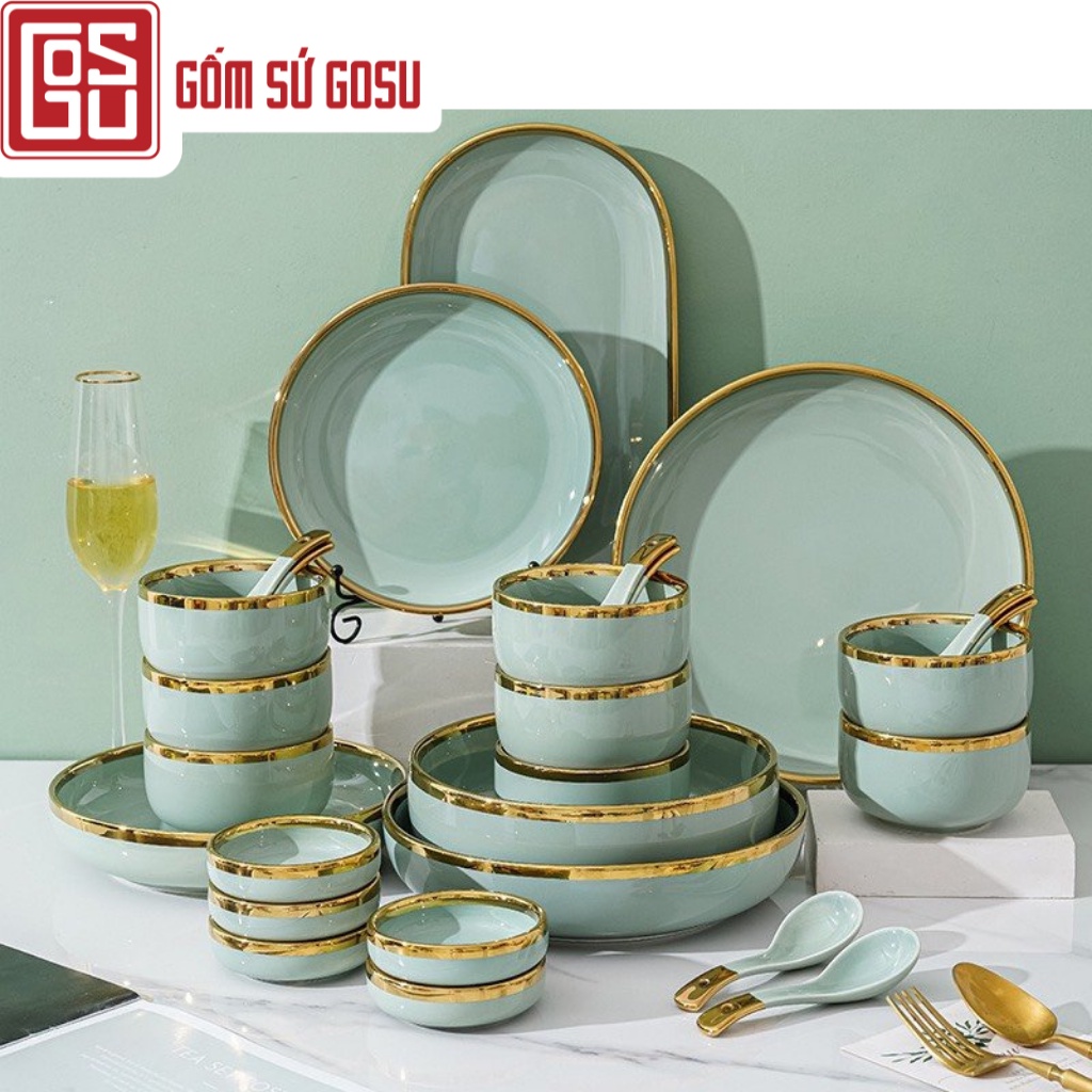 🌿Bộ bát đĩa viền vàng sang trọng, điểm nhấn trên tone sứ màu nhẹ nhàng đem lại cảm giác tinh tế và đơn giản