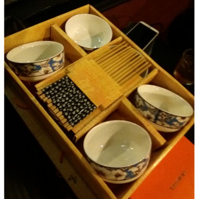 Bộ chén đũa sứ gồm 6 chén và 1 bộ đũa sang trọng