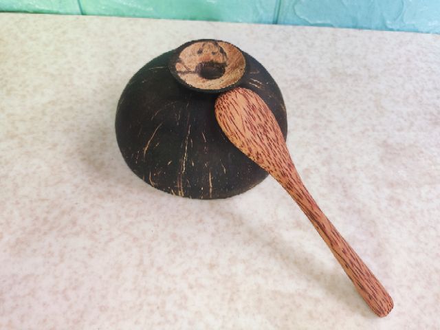Bát gáo dừa kèm theo 1 muỗng súp/kem 16cm như hình.
