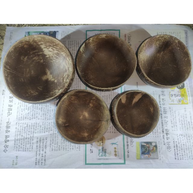 Chén gáo dừa kèm muỗng gỗ dừa. Có đủ kích cỡ gáo từ nhỏ đến lớn.Chén gáo dừa đường kính từ 9-16cm.