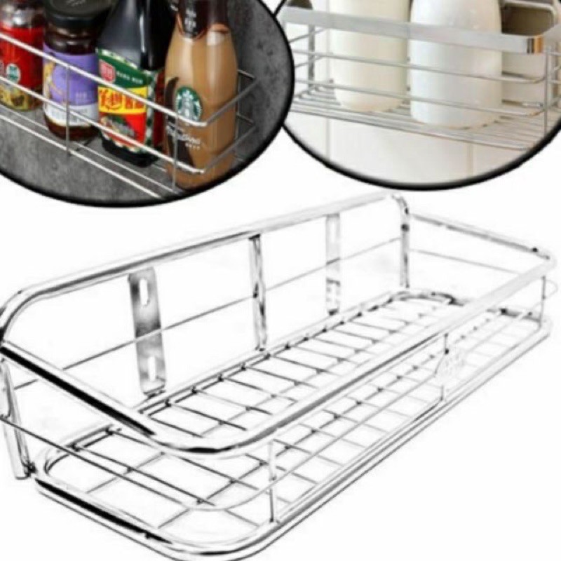 kệ inox treo tường đựng gia vị được làm từ 100% inox.có kích thước xâu 15cm. dài 30, 40, 50, 60cm