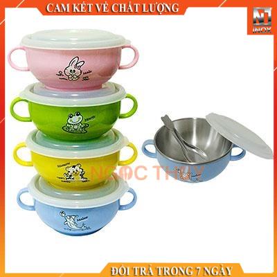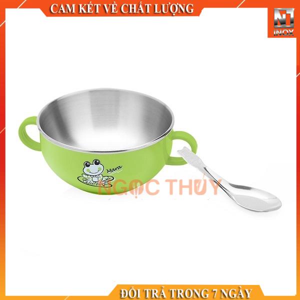 - Chén được thiết kế 2 lớp gồm bên trong là lớp thép không gỉ SUS 304; bên ngoài là lớp nhựa PP cách nhiệt (an toàn cho trẻ), nắp bằng nhựa PP, muỗng bằng Inox SUS 430.