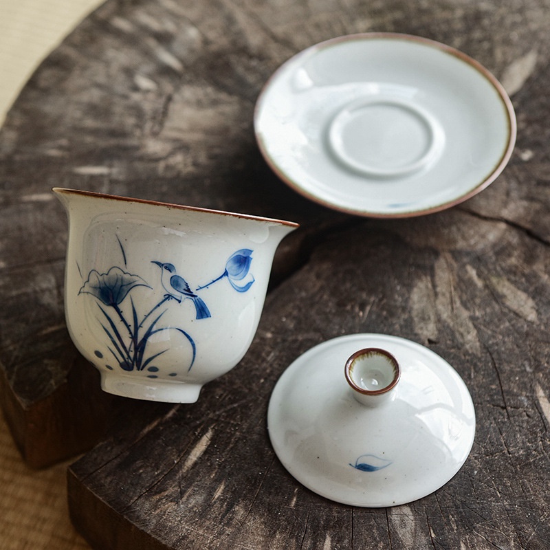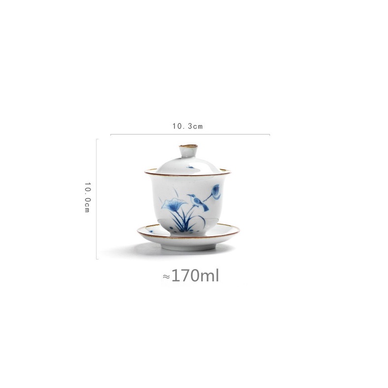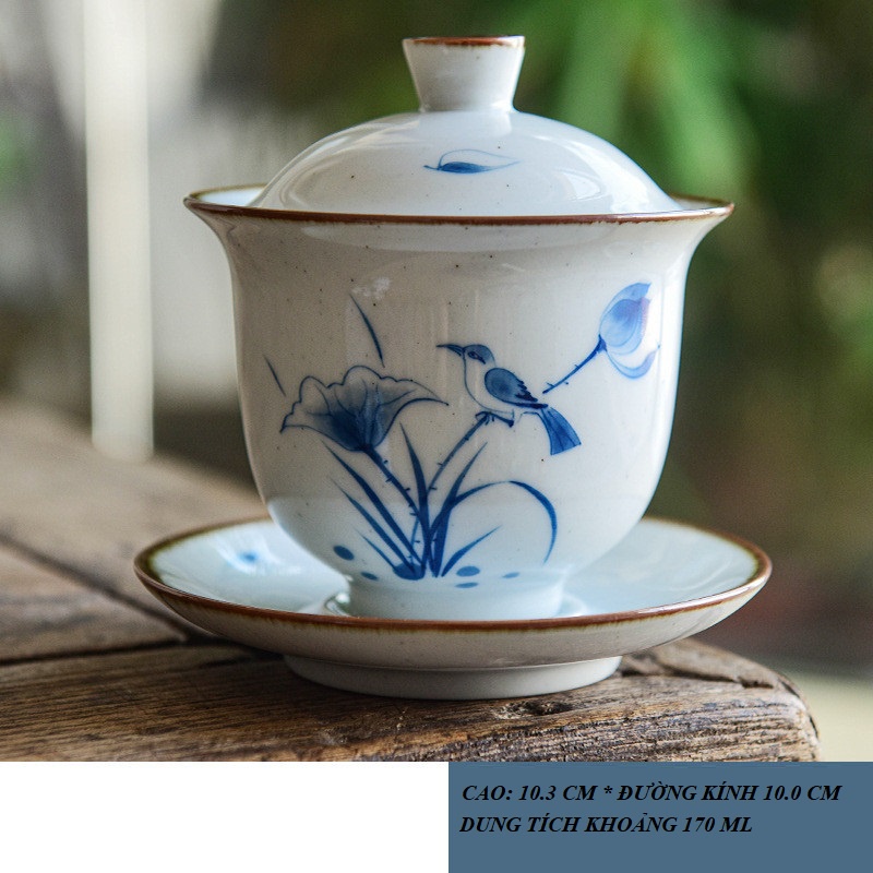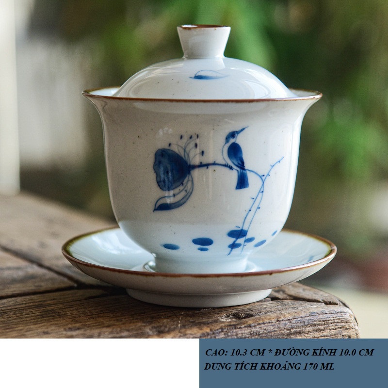 Giới thiệu Chén Khải vẽ tay họa tiết men lam độc đáo 170 ml