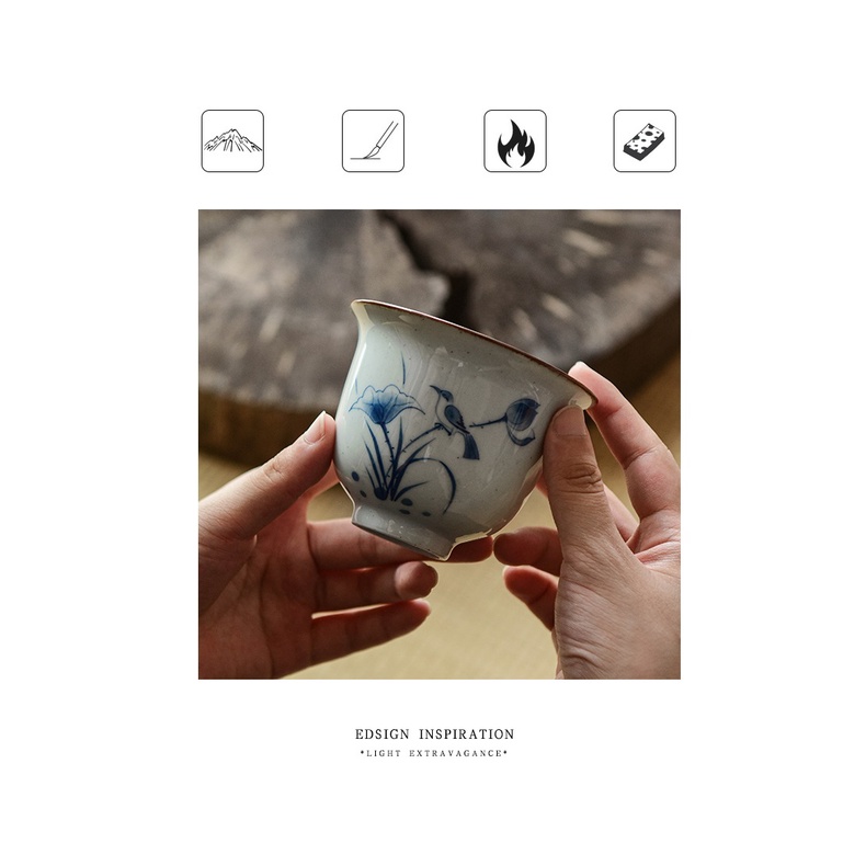 Nhà cửa & Đời sống > Dụng cụ nhà bếp > Dụng cụ pha trà, cà phê || Chén Khải vẽ tay họa tiết men lam độc đáo 170 mlCòn hàng