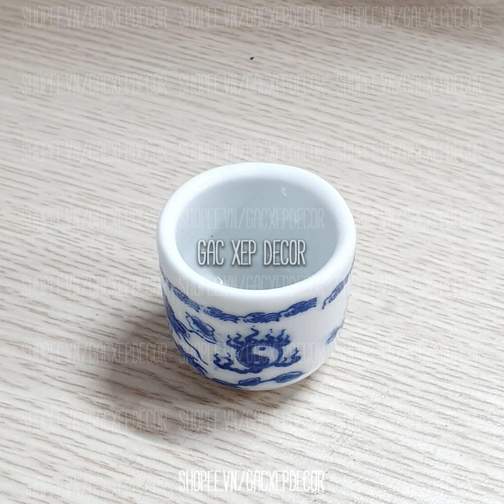 Chén sứ men bóng màu trắng vẽ rồng xanh của Bát TràngKích cỡ: 4x4x4cm
