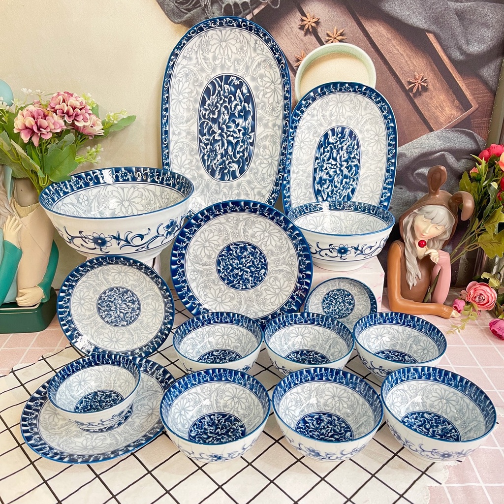 Nhà cửa & Đời sống > Bộ đồ bàn ăn > Dĩa || Bộ Chén Sứ Bát Ăn Cơm Bộ Bát Đĩa Decor Chén Dĩa Sứ Hoa Xanh Dễ Thương Cute Cao Cấp S156Còn hàng