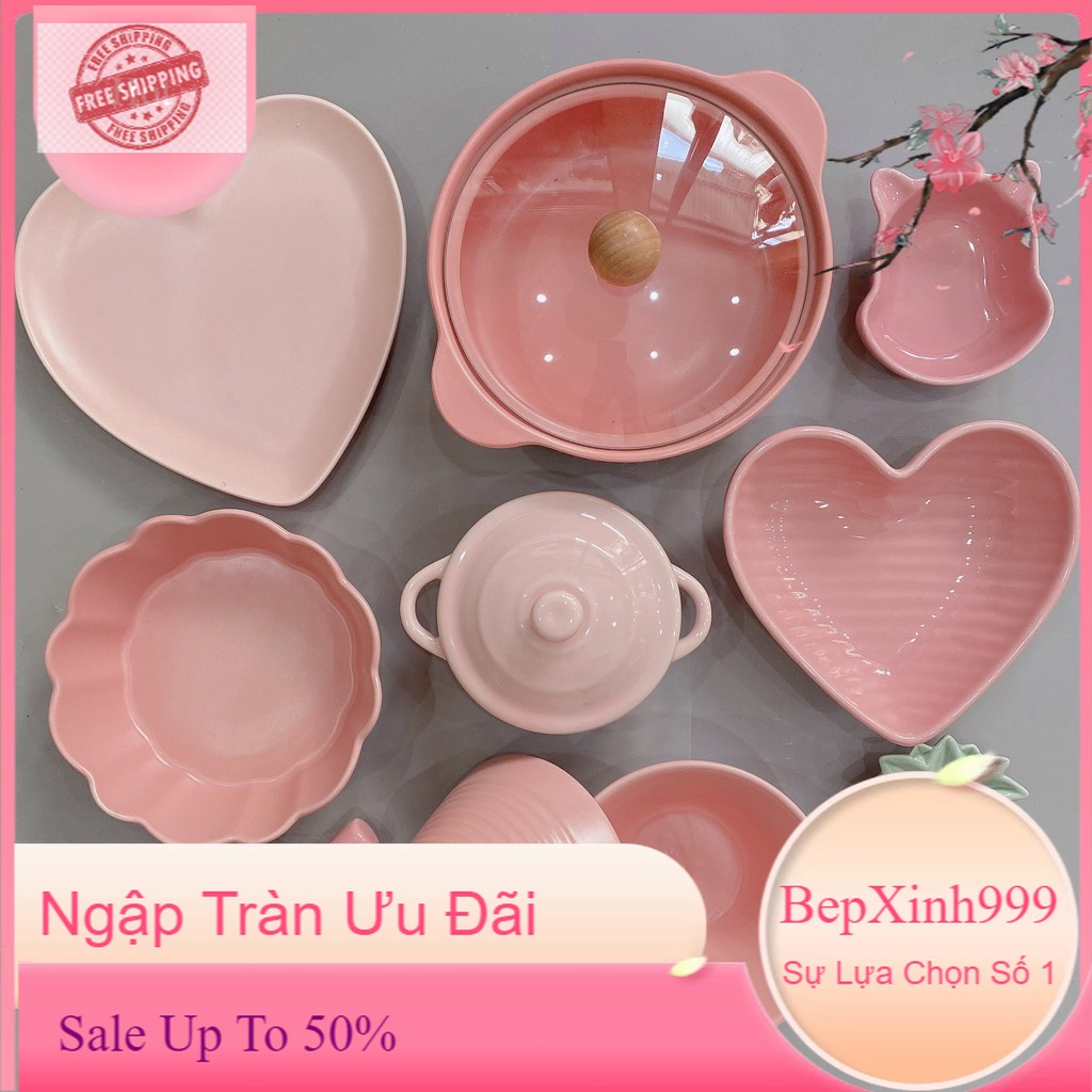 Nhà cửa & Đời sống > Bộ đồ bàn ăn > Dĩa || Chén Sứ Bát Ăn Cơm Bộ Bát Đĩa Decor Chén Dĩa Sứ Mầu Hồng Đào Cute Cao Cấp B54Còn hàng