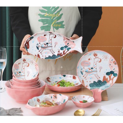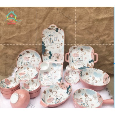 Nhà cửa & Đời sống > Bộ đồ bàn ăn > Dĩa || Bộ Chén Sứ Bát Ăn Cơm Bộ Bát Đĩa Decor Chén Dĩa Sứ Set Hươu Hồng Dễ Thương Cute Cao Cấp B80Còn hàng