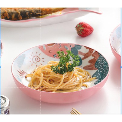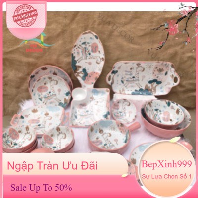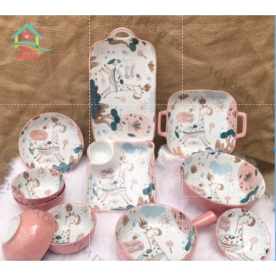 Bộ Chén Sứ Bát Ăn Cơm Bộ Bát Đĩa Decor Chén Dĩa Sứ Set Hươu Hồng Dễ Thương Cute Cao Cấp B80