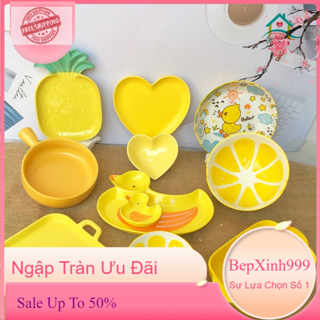 Nhà cửa & Đời sống > Bộ đồ bàn ăn > Dĩa || Chén Sứ Bát Ăn Cơm Bộ Bát Đĩa Decor - BepXinh999 Chén Dĩa Sứ Mầu Vàng Dễ Thương Cute Cao Cấp B62Còn hàng