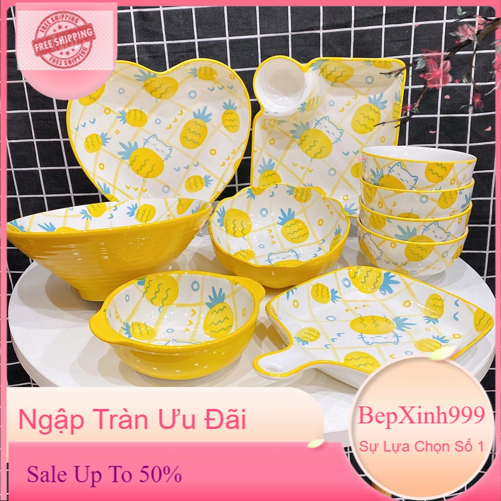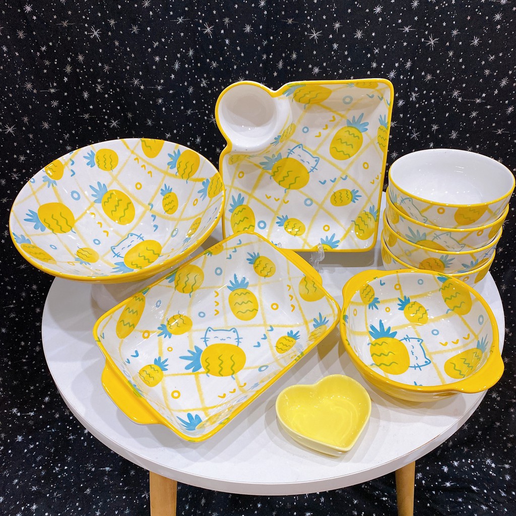 Nhà cửa & Đời sống > Bộ đồ bàn ăn > Dĩa || Chén Sứ Bát Ăn Cơm Dứa Vàng Nhiệt Đới Chén Dĩa Sứ Bộ Bát Đĩa Decor Dễ Thương Cute Cao Cấp B109Còn hàng