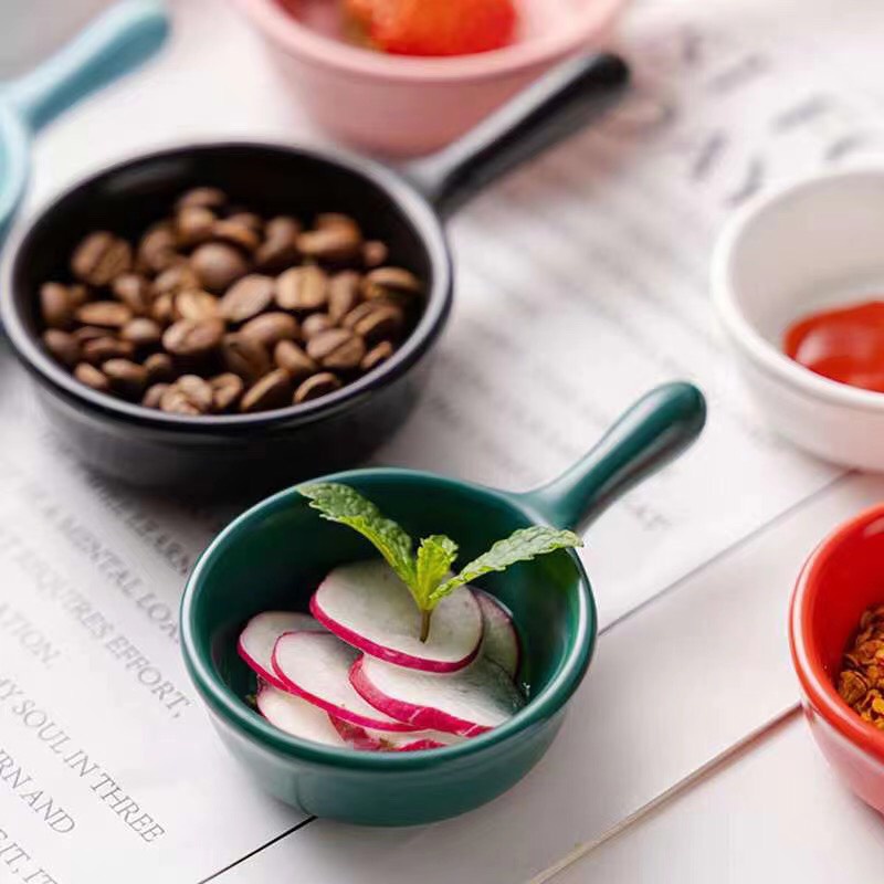 -Trên bàn an gia đình thì không thể thiếu được món gia vị dễ thương. BÁT nước chấm màu bằng sứ nhiều màu chắc chắn sẽ là 1 nhưng món rất cần thiết để đựng nước chấm, bột canh, gia vị.... để bàn ăn thêm phần dễ thương.