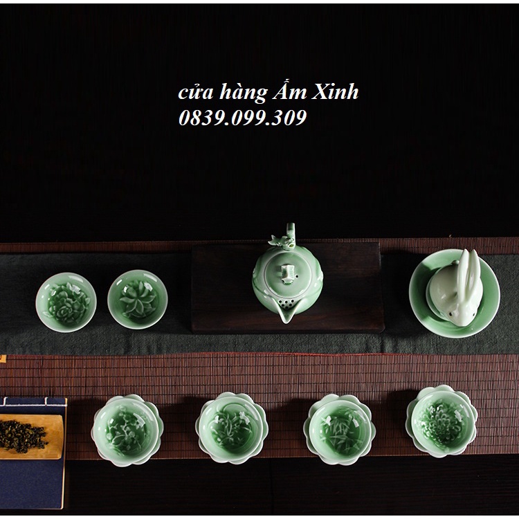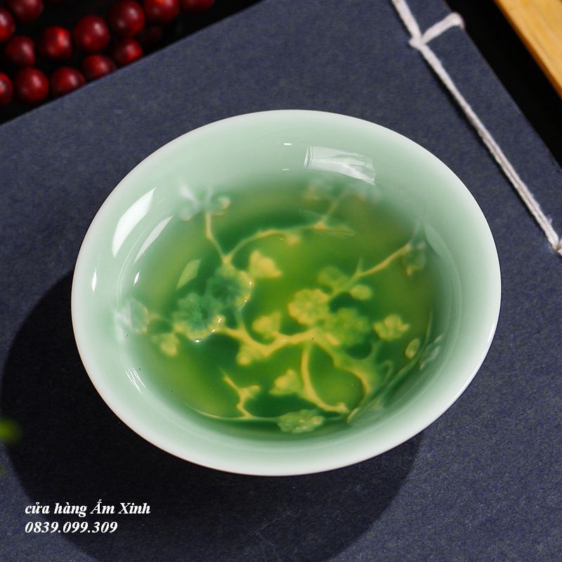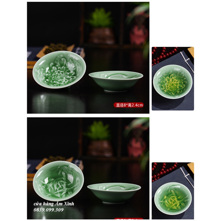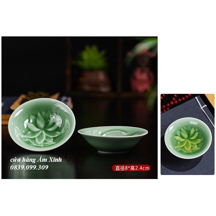 + Chất liệu: Sứ thanh hoa – sứ Cảnh Đức (sứ mỏng cao cấp, Độ tinh khiết rất cao anh sáng có thể lọt qua)