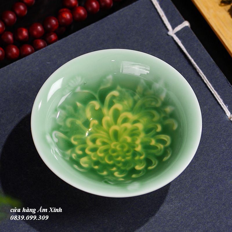 Chén Sứ Cảnh Đức họa tiết vẽ chìm bằng tay (50 ml)