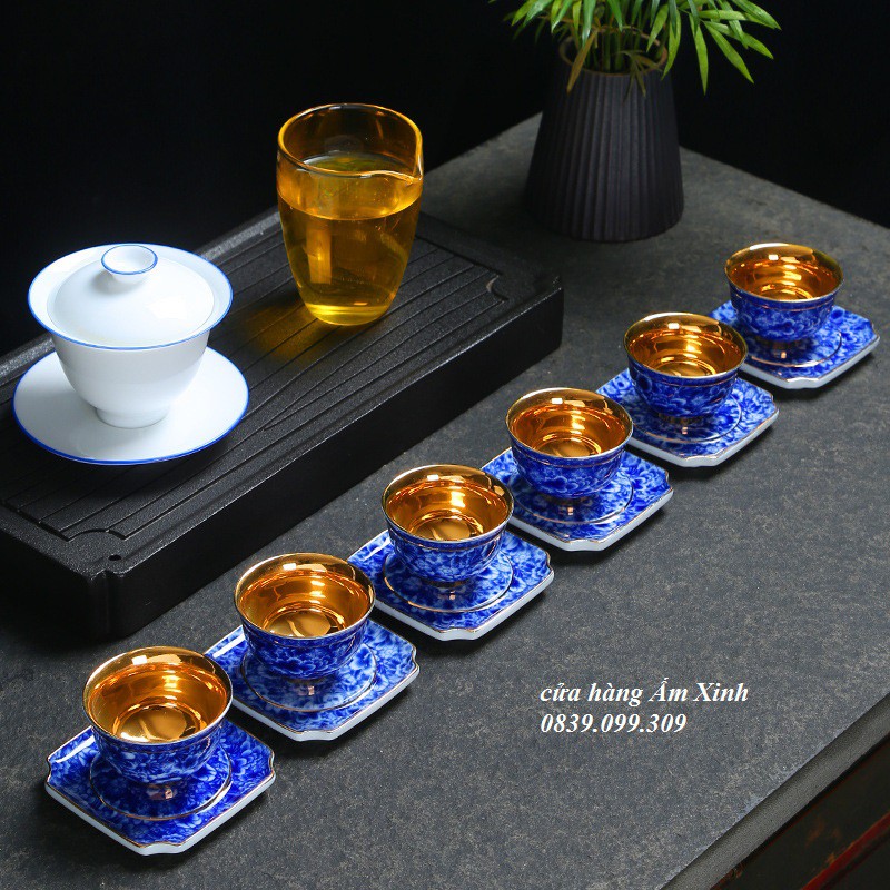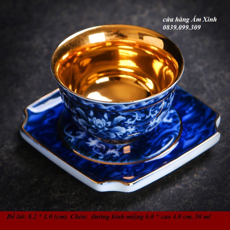 Bộ chén sứ Cảnh Đức vẽ tay thủ công vàng 24k + Lót chénMô tả sản phẩm: