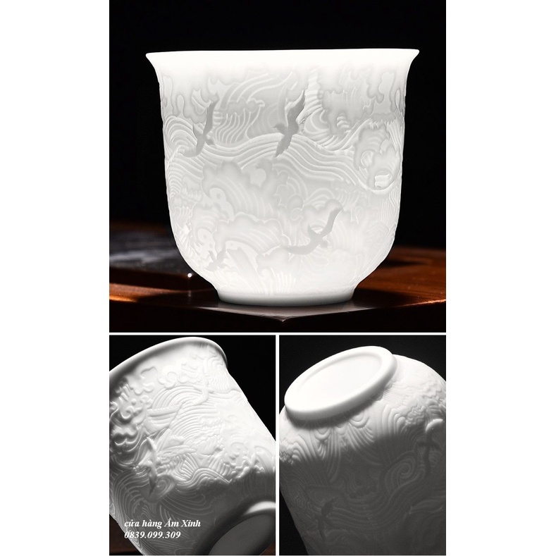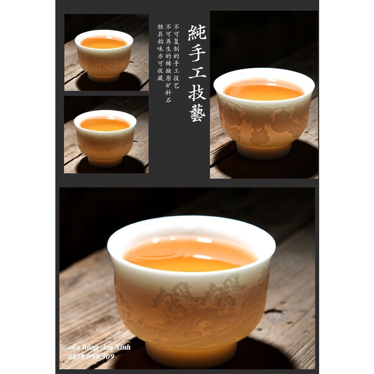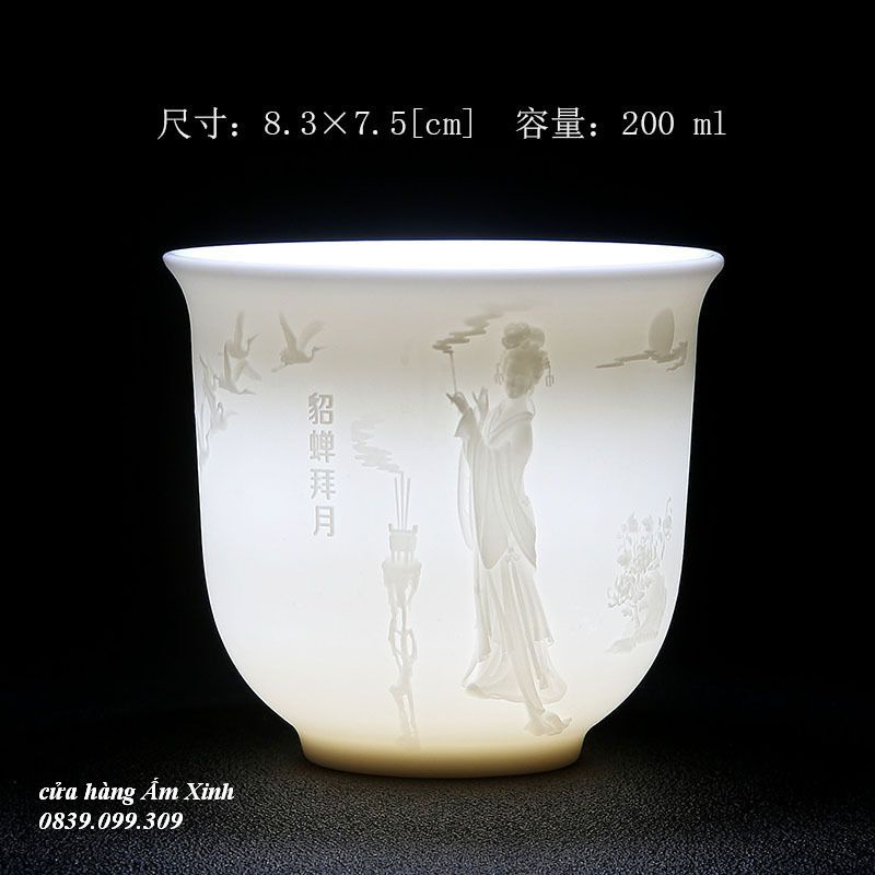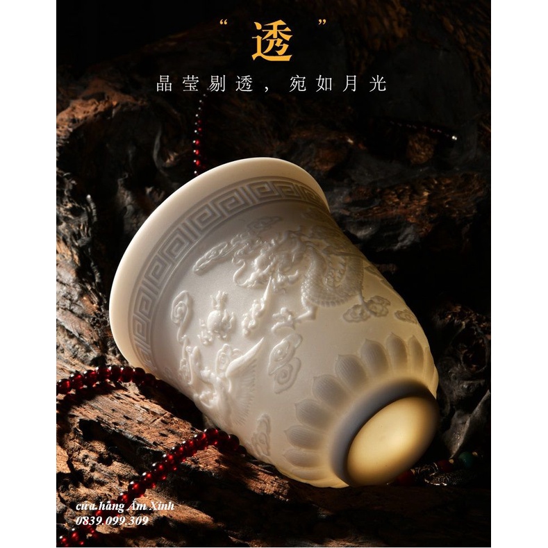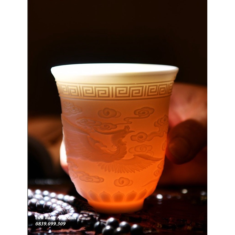 + Chất liệu: Sứ trắng thanh khiết thấu quang – sứ Cảnh Đức (sứ mỏng cao cấp, Độ tinh khiết rất cao ánh sáng có thể lọt qua)