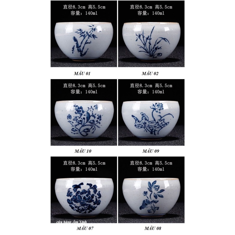 Chén Chủ vẽ tay họa tiết men lam độc đáo 140 mlMô tả sản phẩm: