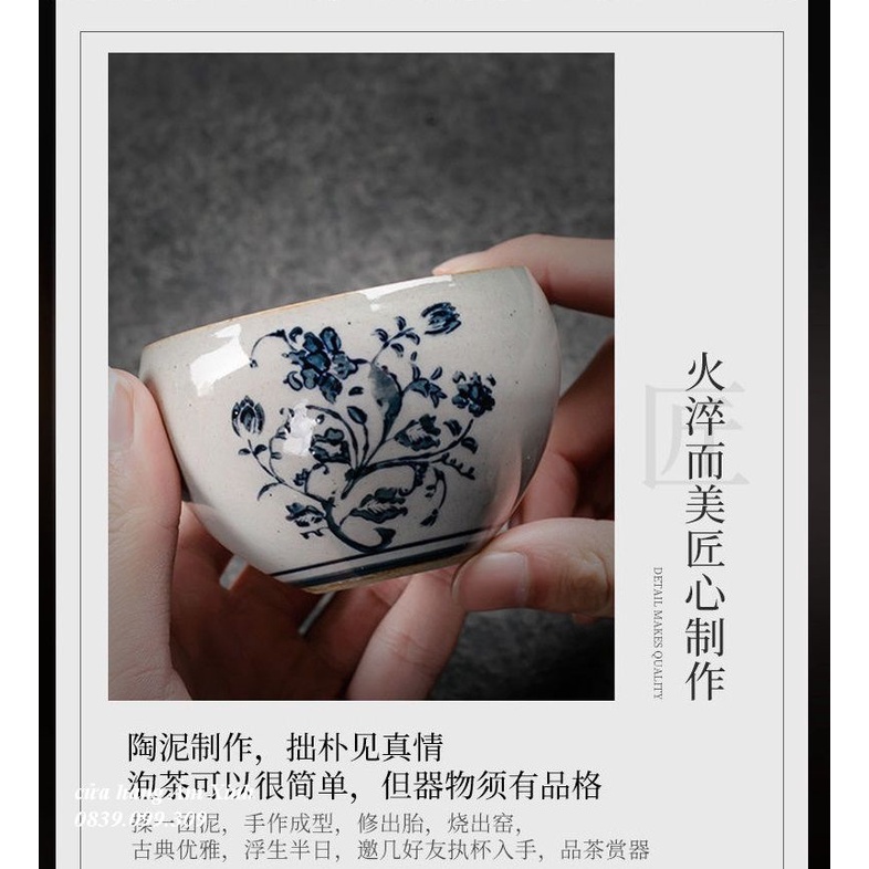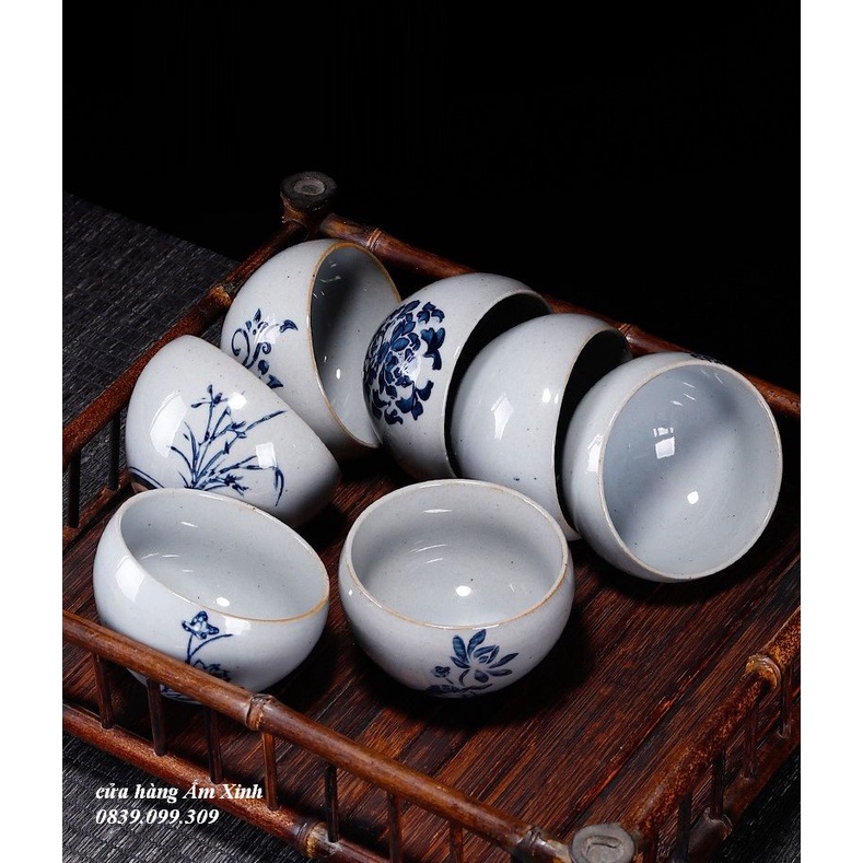 Chén Sứ Cảnh Đức vẽ tay họa tiết men lam độc đáo 140 ml