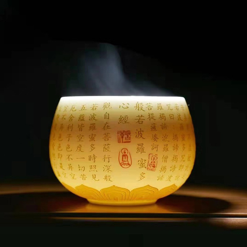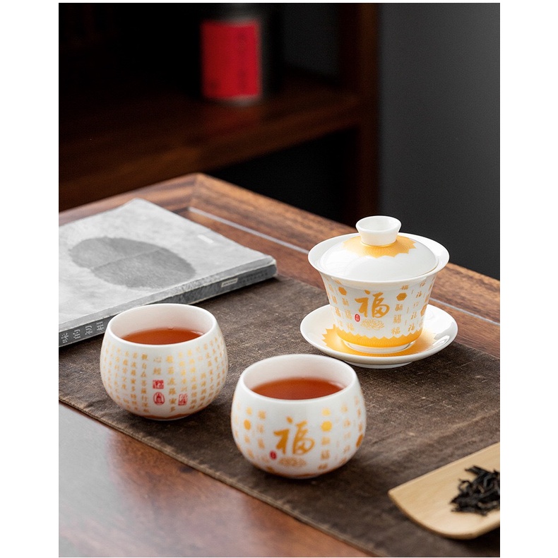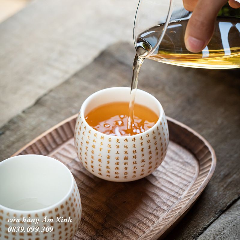 Trà" là men say của lữ khách " Hương" là trái tim của Trà. Trà với khách tương phùng. Chén sứ Cảnh Đức cao cấp, đây là món quà đặc biệt dành cho khách thưởng trà sành điệu nhất. - Trong lịch sử chén sứ Cảnh Đức chỉ dành cho vua chúa và quan lớn trong triều ngày xưa. Nó là biểu tượng của sự sang quý.