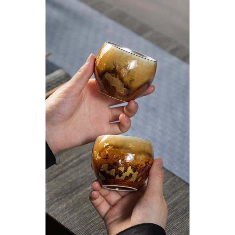 Nhà cửa & Đời sống > Dụng cụ nhà bếp > Dụng cụ pha trà, cà phê || Bộ Chén Sứ Cảnh Đức Vẽ Tay Thủ Công Hình Chú Hươu tráng Men Vàng 110 ml (Kèm Hộp Quà)Còn hàng