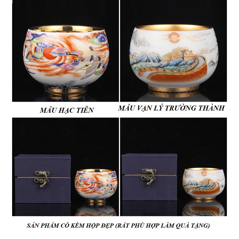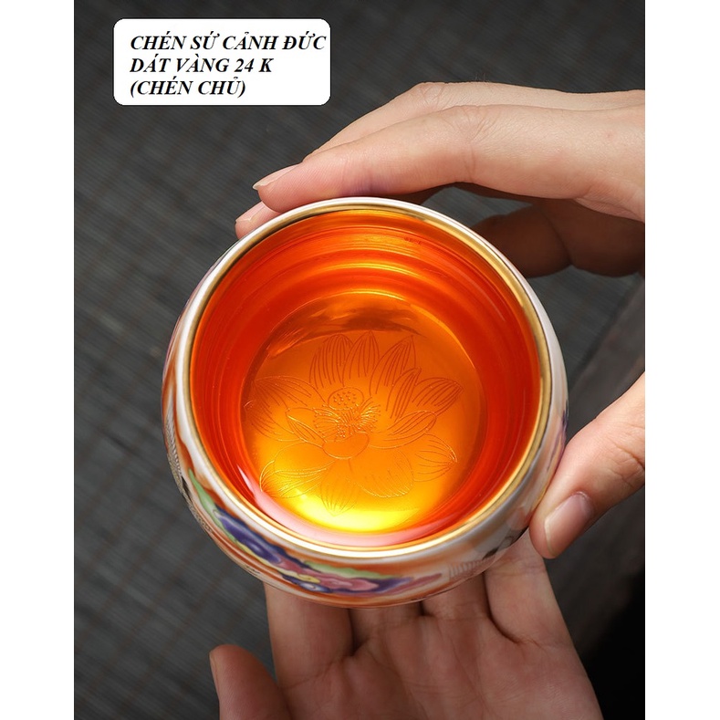 Chén Sứ Cảnh Đức Vẽ Tay Thủ Công lòng chén dát vàng 24K (Sản phẩm cao cấp 110 ml)