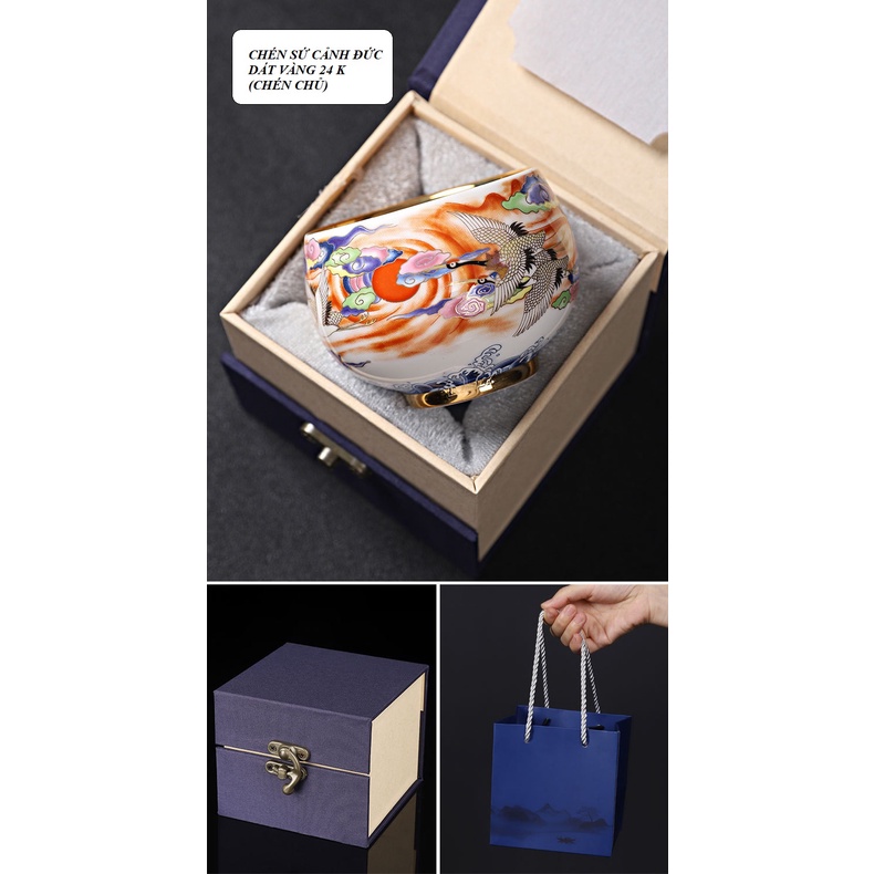 Giới thiệu Chén Sứ Cảnh Đức Vẽ Tay Thủ Công lòng chén dát vàng 24K (Sản phẩm cao cấp 110 ml)