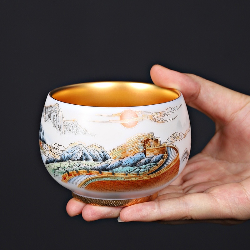 Nhà cửa & Đời sống > Dụng cụ nhà bếp > Dụng cụ pha trà, cà phê || Chén Sứ Cảnh Đức Vẽ Tay Thủ Công lòng chén dát vàng 24K (Sản phẩm cao cấp 110 ml)Còn hàng
