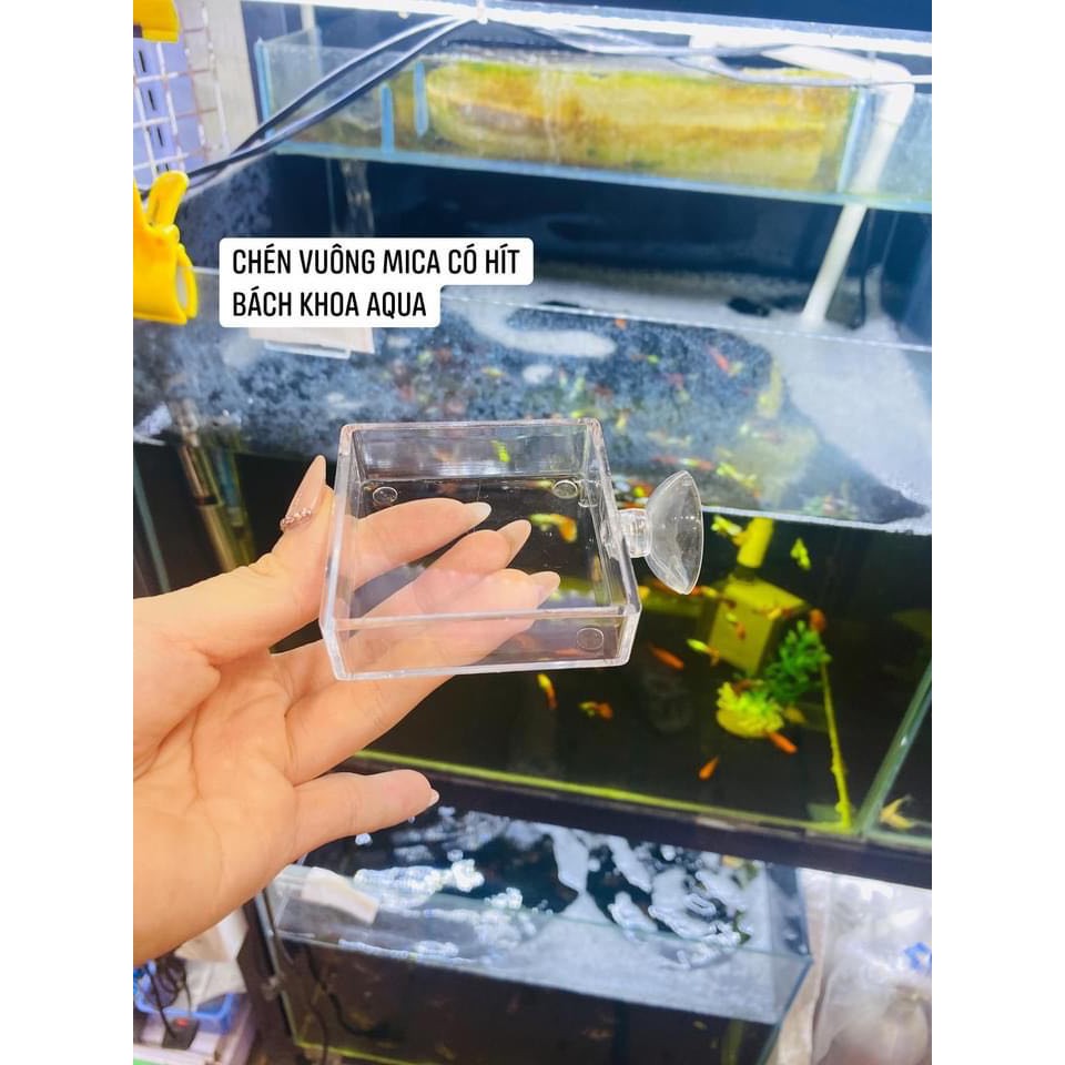 Chén nhựa mica siêu trong cho cá, tép cảnh ăn, giúp gom các loại thức ăn của tép không bị vương vãi gây ô nhiễm nguồn nước ảnh hưởng tới sức khỏe của tép. Chén đựng thức ăn cho cá tép được làm từ mica trong suốt tăng thêm phần sinh động cho chiếc bể nuôi cá tép của bạn. Đây là loại chén đựng thức ăn cho cá tép rất thông dụng hiện nay.Chén được thiết kế dạng tròn và vuông kết hợp núm hít giữ cố định chén trên vị trí thành kính, giúp bạn thuận tiện cho cá và tép ăn theo vị trí trong hồ mà mình mong muốn.
