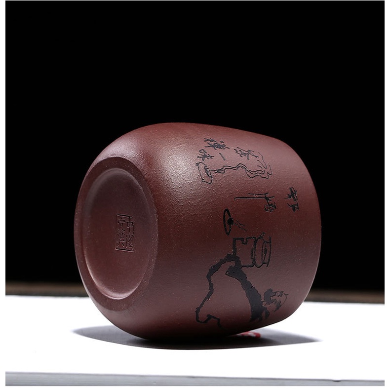Chén Tử Sa Nghi Hưng 90 ml vẽ họa tiết Đạt Ma Sư Tổ (Tử Nê)