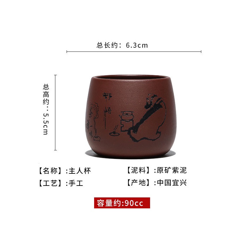 Chén Tử Sa Nghi Hưng 90 ml vẽ họa tiết Đạt Ma Sư Tổ (Tử Nê)– Dung tích: 90 ml +/- 10 ml