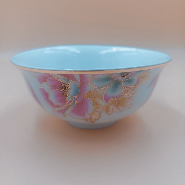 Họa tiết hoa đỏ bắt mắt . viền bát được phủ bằng vàng thật 18k sang trọng.