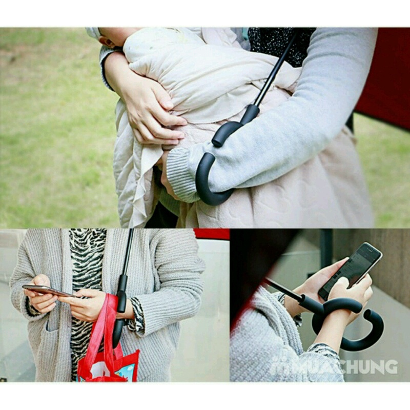 – Tay cầm kiểu chữ C cho phép xỏ tay vào giữ ô bằng cánh tay để cầm nắm nhiều đồ khác.