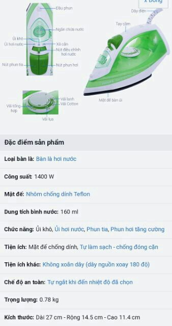 Thương hiệu: Philips | Xem thêm các sản phẩm Bàn ủi, bàn là của PhilipsMô tả ngắn