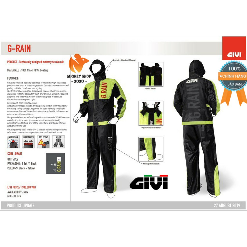 #Mickey2020Shop #GIVI #HangChinhHang #BaoHanh2Nam #AoMuaBoGivi #GRA01 #PRS04 #PRS20 #RRS04 #RRS06 #RRS07#SC02 #BoQuanAoMua #XuatXuThuongHieuItalia