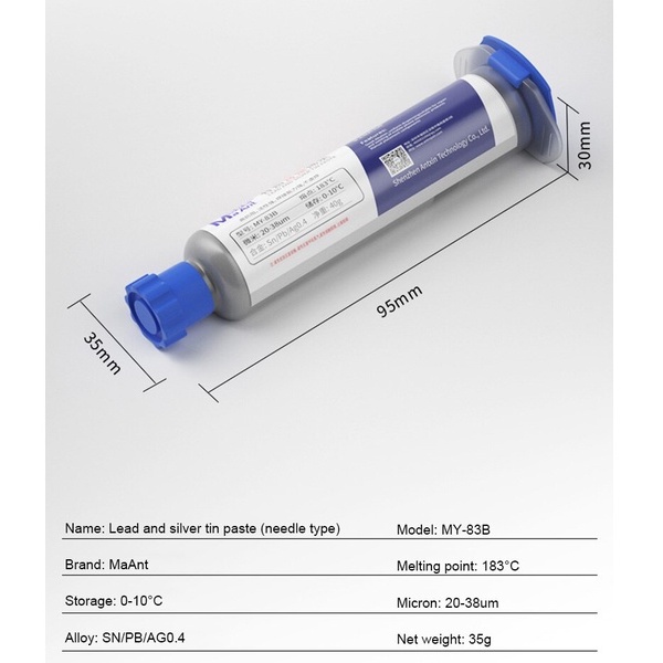 Giới thiệu Chì xi lanh nhiệt cao 183°C (Ag 0.4% cứng chắc) Ma Ant MY-83B