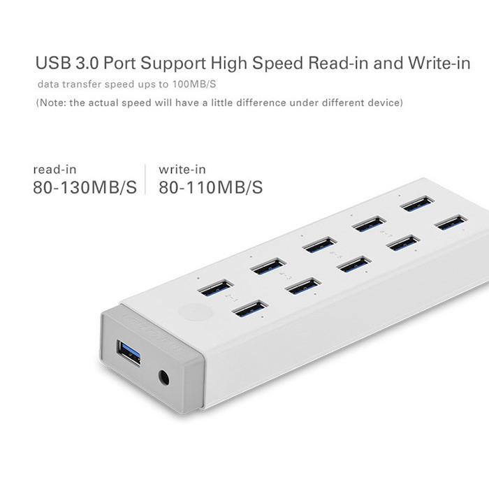 Bộ chia USB 3.0 Ugreen 20297 giúp bạn mở rộng thêm nhiều cổng USB của máy tính PC, Laptop…với cổng kết nối USB 3.0 tốc độ cao gấp 10 lần chuẩn USB 2.0Thông số kỹ thuật bộ chia 10 cổng USB 3.0 kèm nguồn hỗ trợ sạc Ugreen 20297