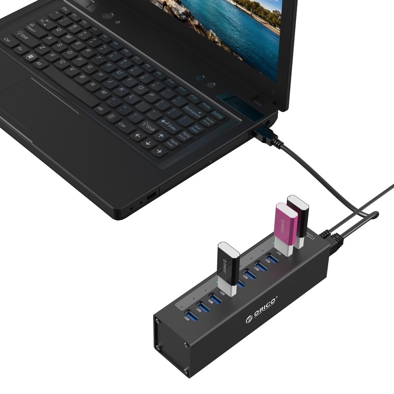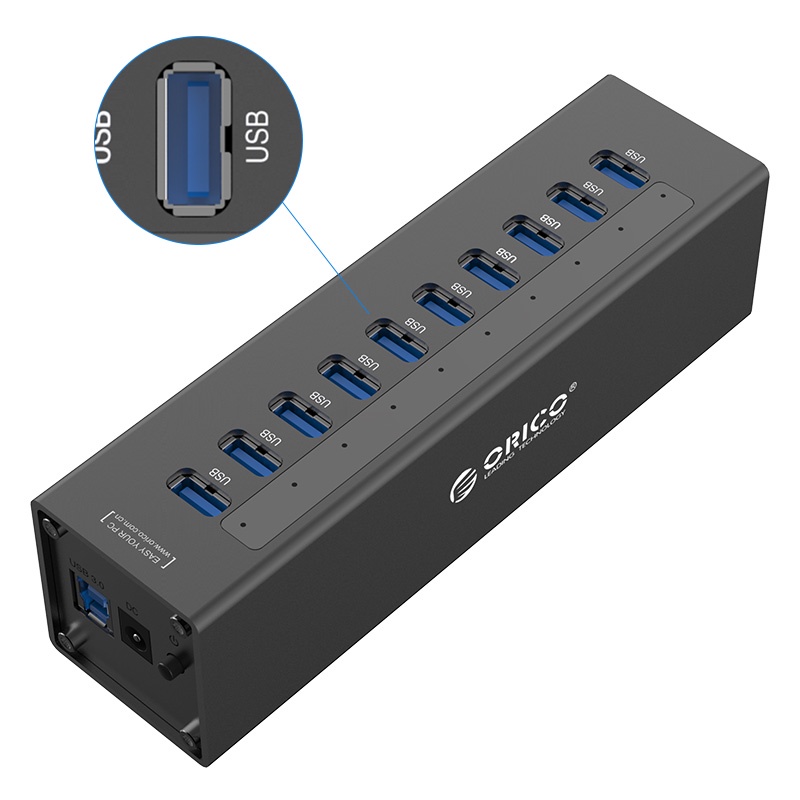 Máy tính & Laptop > Phụ Kiện Máy Tính > Bộ chia cổng USB & Đọc thẻ nhớ || Bộ chia 10 cổng USB 3.0 Orico A3H10-V2 vỏ nhôm - Hub USB 10 Port - HapustoreCòn hàng