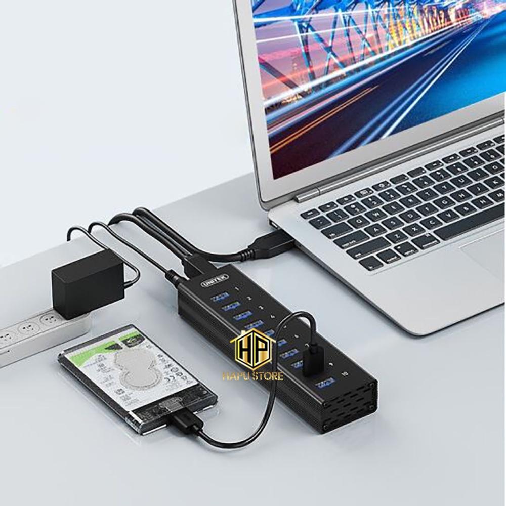 Giới thiệu Bộ chia 10 Cổng USB 3.0 UNITEK H305A - HUB USB 10 Port Vỏ Nhôm - Hapustore