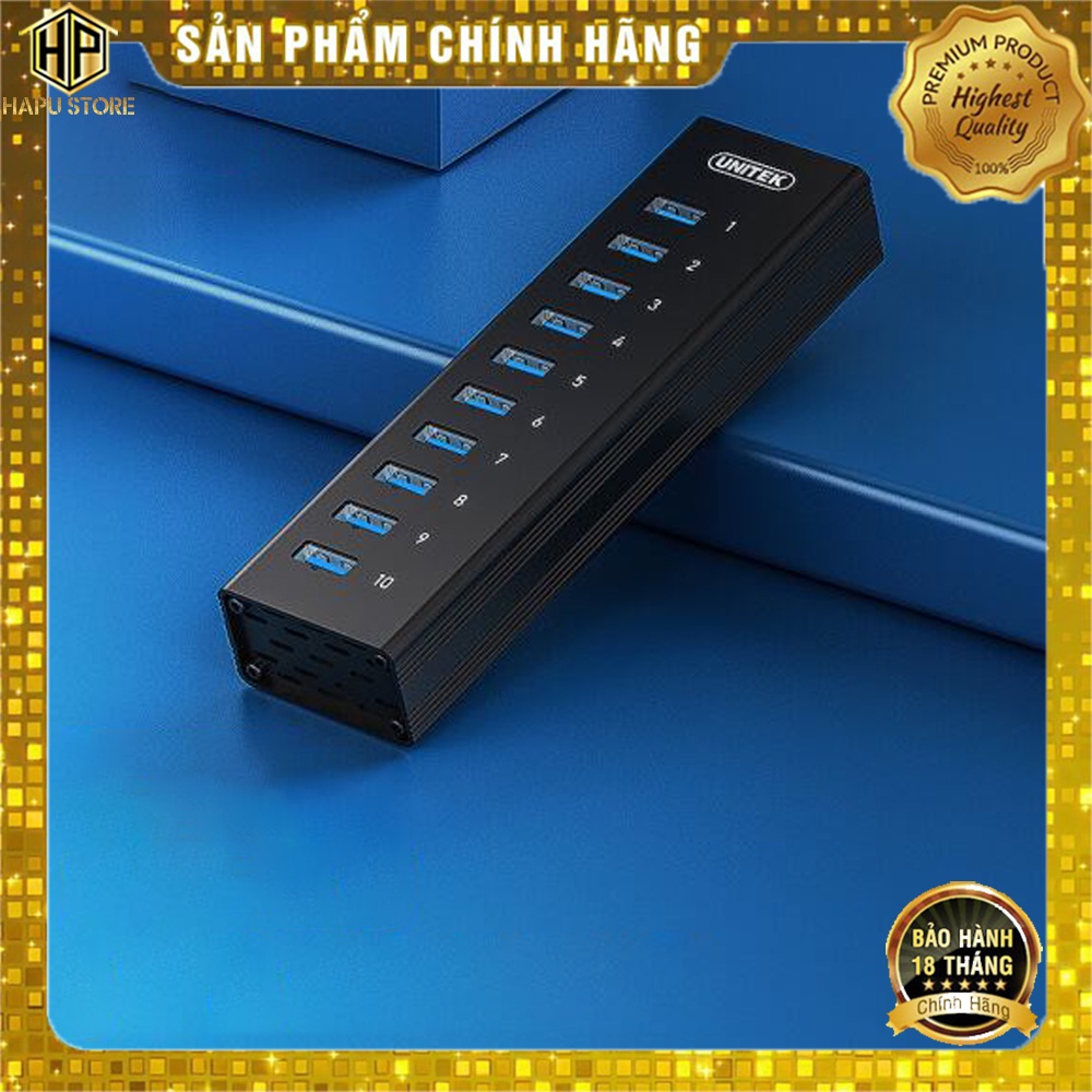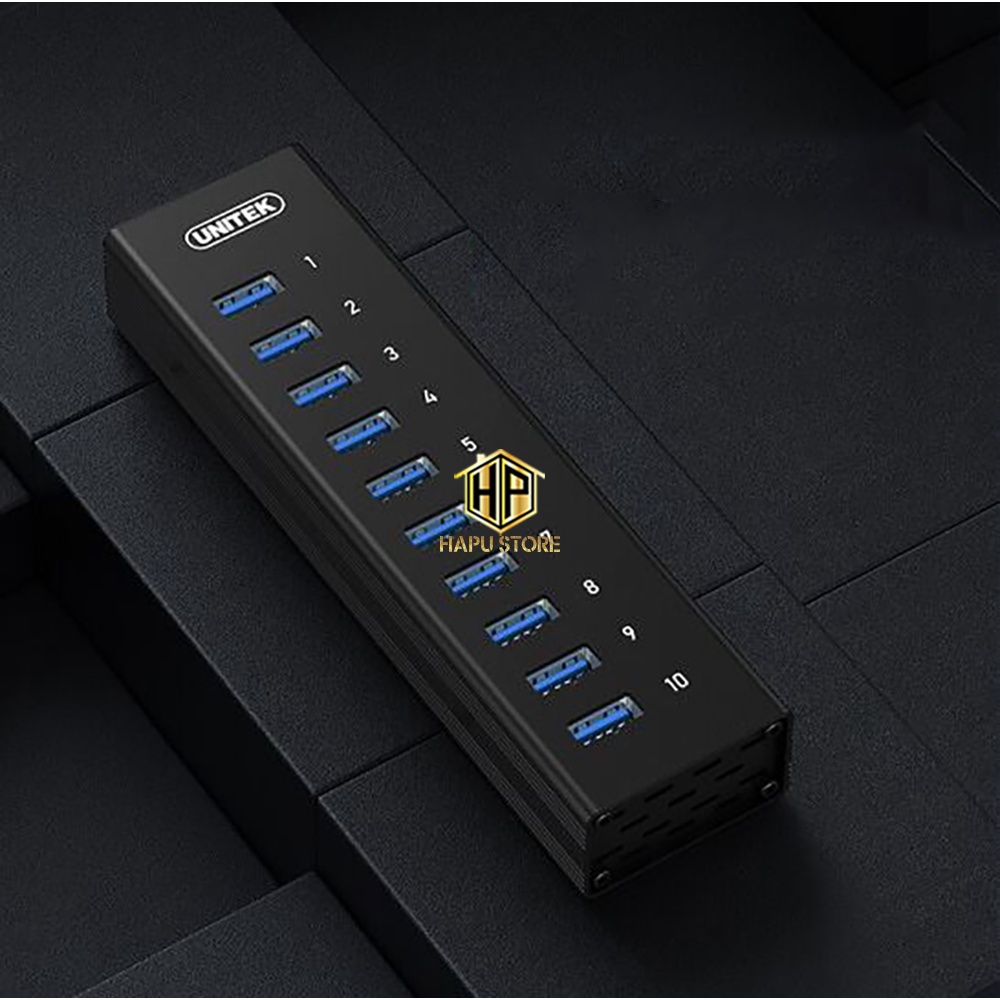 Bộ chia 10 Cổng USB 3.0 UNITEK H305A - HUB USB 10 Port Vỏ Nhôm - Hapustore