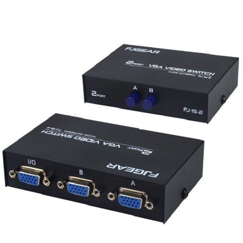 Bộ gộp VGA 2 vào 1 ra là thiết bị hỗ trợ chuyển mạch tín hiệu từ 2 nguồn phát VGA vào chung 1 màn hình, máy chiếu thông qua cổng VGA, hỗ trợ gộp tín hiệu với khả năng chọn nguồn phát thông qua nút bấm chọn kênh trên thiết bị