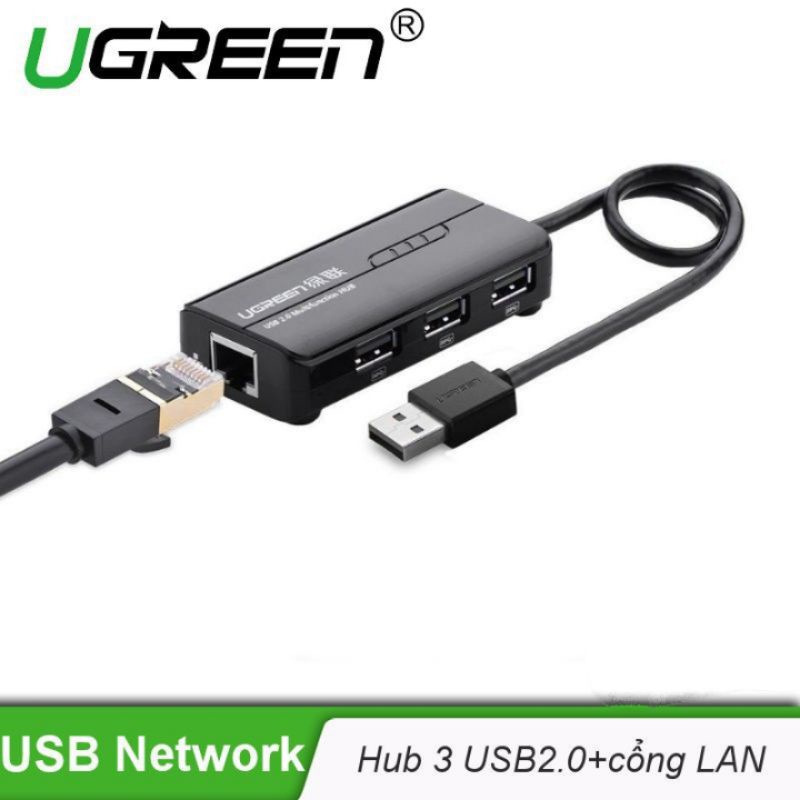Bộ chia 3 cổng USB 2.0 tích hợp cổng mạng Ethernet cao cấp (Usb sang Lan) Ugreen 20264 - Hàng chính hãngBộ chia 3 cổng USB 2.0 tích hợp cổng mạng Ethernet cao cấp (Usb sang Lan) Ugreen 20264 - Hàng chính hãng