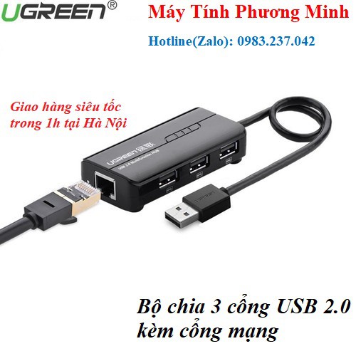 Bộ chia 3 cổng USB 2.0 tích hợp cổng mạng Ethernet cao cấp (Usb sang Lan) Ugreen 20264 - Hàng chính hãngMô tả sản phẩm: Ugreen 20264