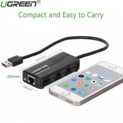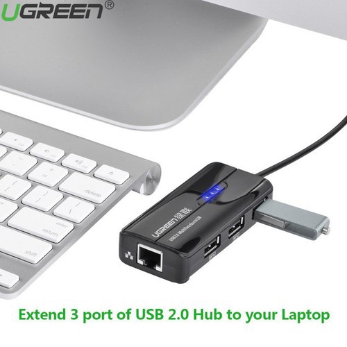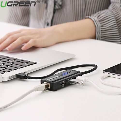 Bộ chia 3 cổng USB 2.0 kèm cổng mạng Ethernet 10/100Mbps Ugreen 20264 không chỉ có thể thêm một giao diện mạng để máy tính của bạn thông qua cổng USB,