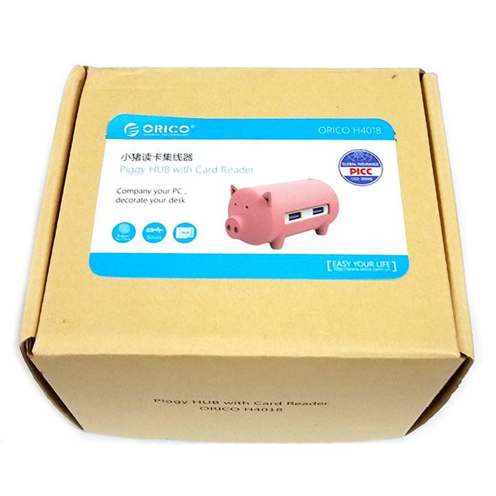 Bộ chia 3 cổng USB 3.0 kết hợp đầu đọc thẻ SD - micro SD hình lợn conmàu xanh/ màu hồng Orico H4018 HB11